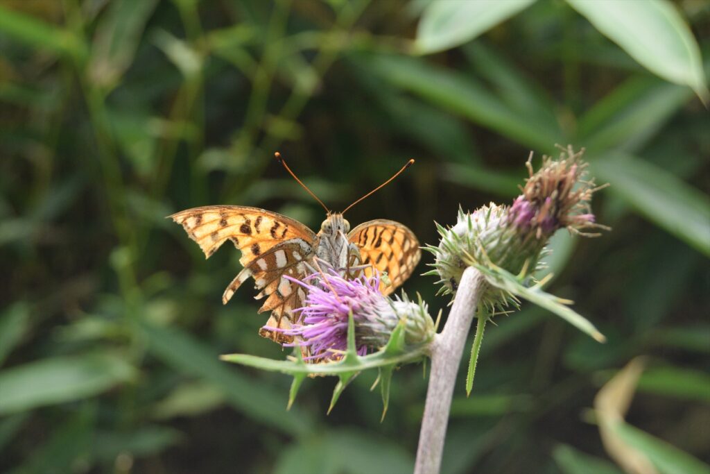 ヒョウモンチョウたちは翅がボロボロになりながらも一夏を生き抜いた力強い姿を見せてくれました。