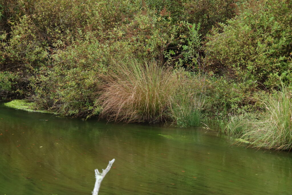 湯川沿いでは谷地坊主の色が変わり始めていました。