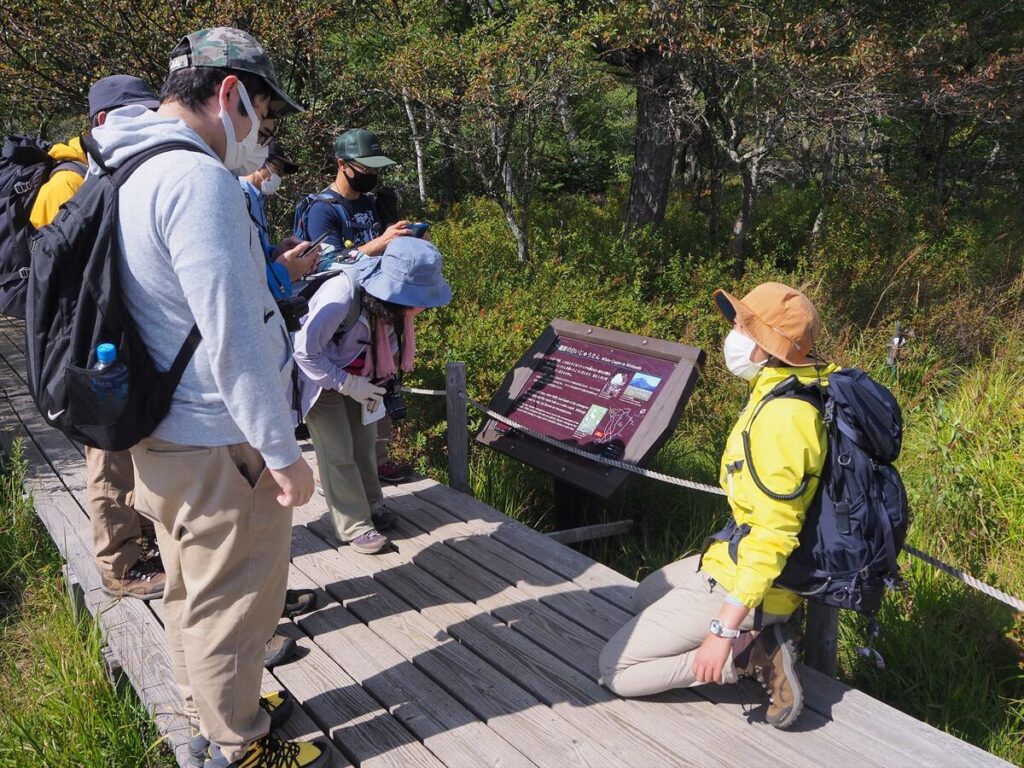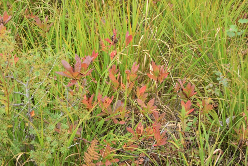 ワタスゲデッキからレンゲツツジの紅葉を観察できますよ。