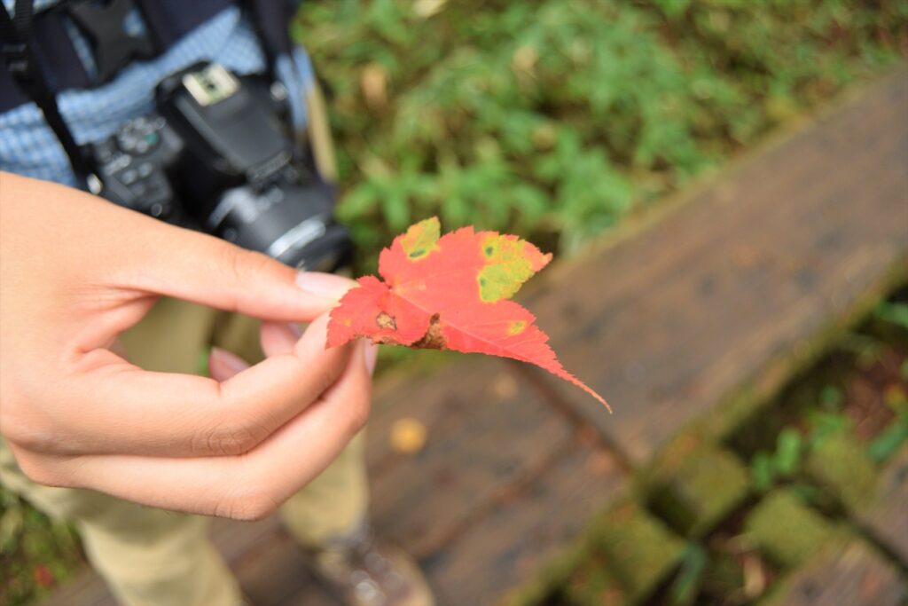 真っ赤な落ち葉が!まだ数は少ないですが、探してみるのも楽しいですよ。