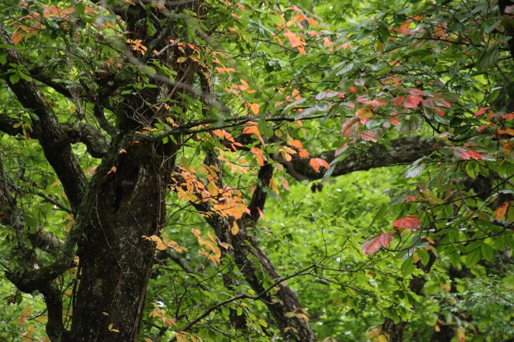 バスから見ることのできるしゃくなげ橋の現在の様子です。奥の方から色づきが始まっています。