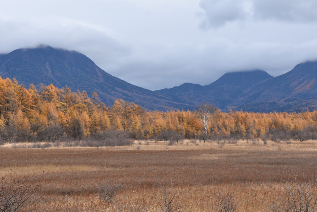 小田代原はカラマツの金屏風がまだ綺麗にみられました。徐々に葉の量が少なくなってきているのでお早めにご覧ください。