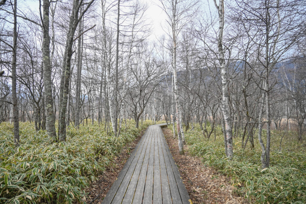 光徳入口から葉が落ちた明るい森を抜けていくと、戦場ヶ原の北側に出ます。