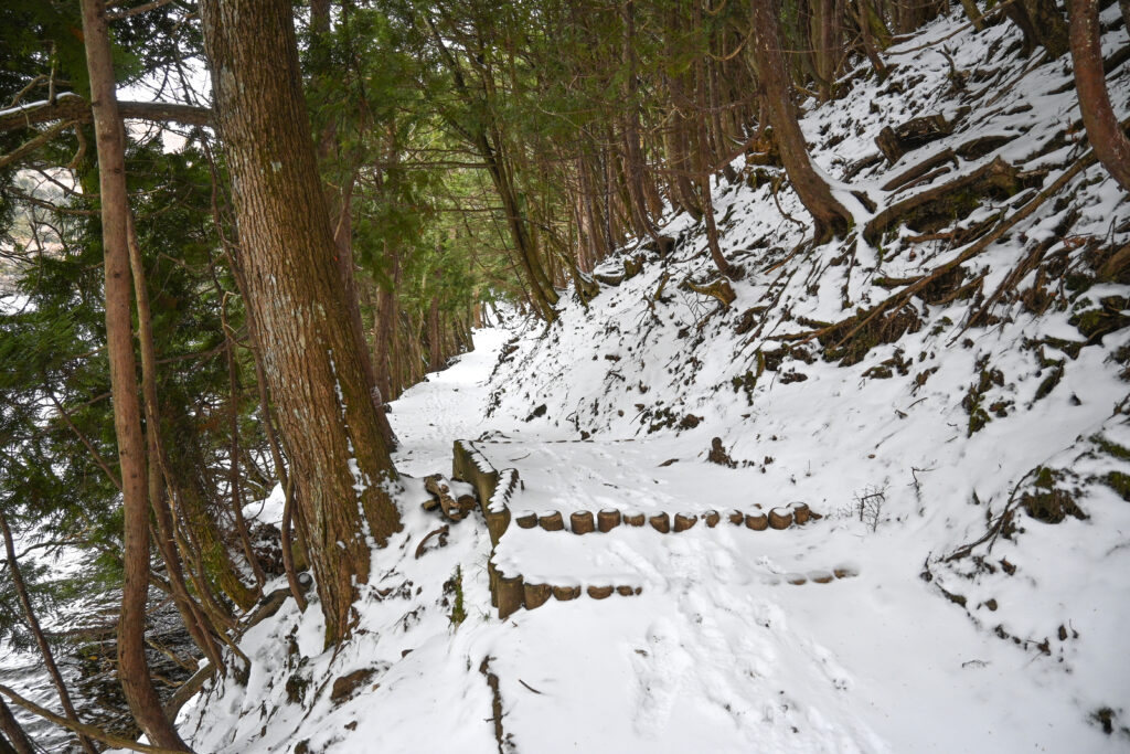 展望台から10分ほど歩いた先では、左側斜面に面白い光景が見られました。