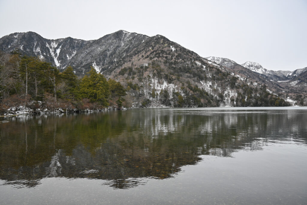 17日には中禅寺湖周辺でも一日中雪が舞っていましたが、風に飛ばされて路肩に多少吹き溜まる程度でした。しかし、湯元方面の山はしっかり積雪しているように見えたので、湯ノ湖と小田代原の積雪状況を確認しに行ってきました。