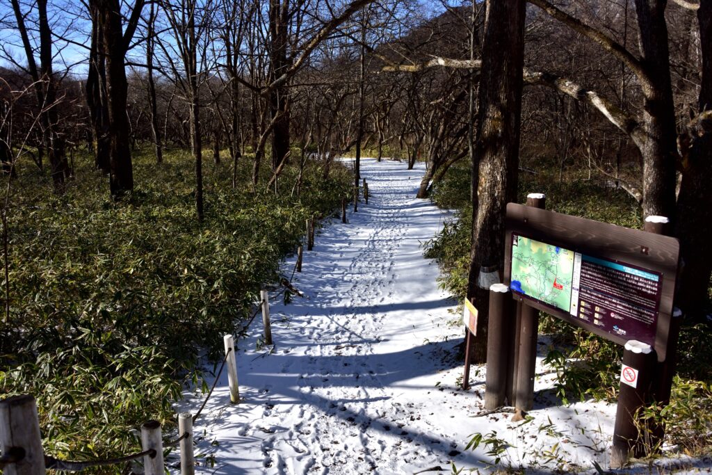 戦場ヶ原周辺も例にもれず、今回のコース全体でだいたい2~3cm程度の積雪があります。