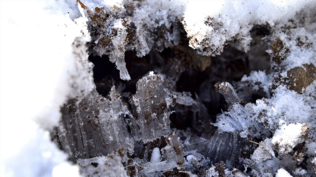うっすら積もった雪の下の霜柱を踏み砕く音がなんとも耳心地が良い!