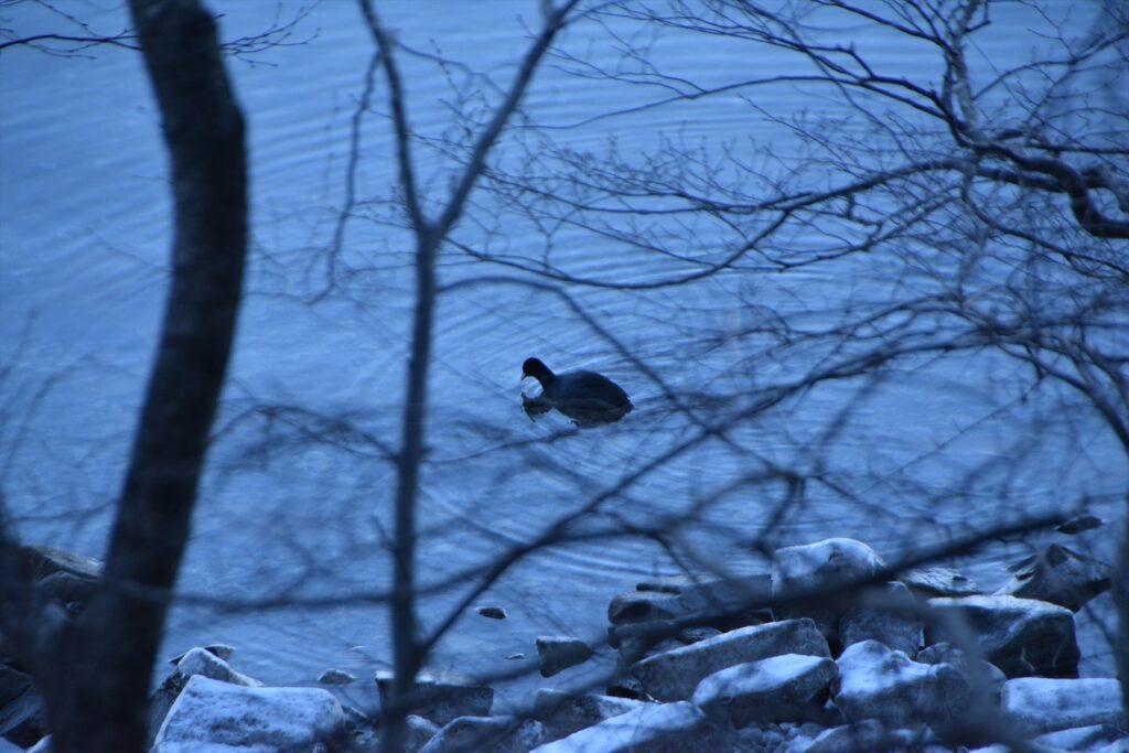 そして岸の方に近づいてきた水鳥の観察もしやすい場所でもあります。オオバンやキンクロハジロといった冬鳥を肉眼でもはっきり見られました。