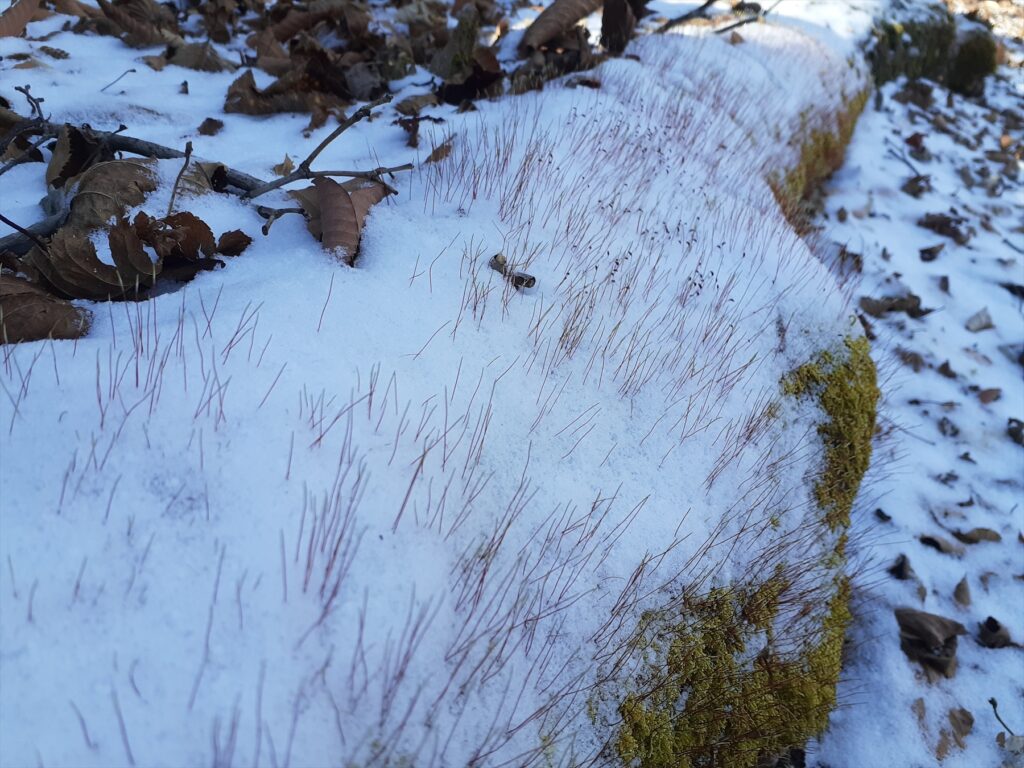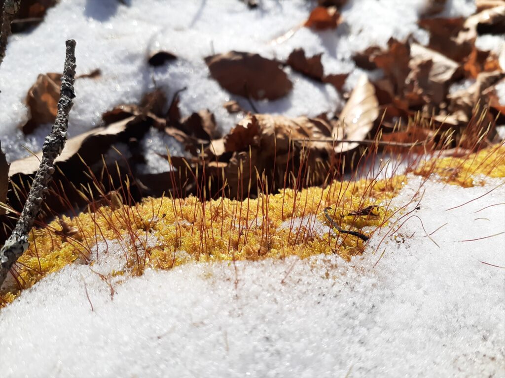 いわゆる「コケの花」と呼ばれるものですが、実のところ花ではありません。胞子体といわれるコケの体の一部で、先端には胞子が詰まっています。暖かくなって成熟すると胞子を出します。たくさん生えているとつい撫でたくなります。柔らかくて気持ちいいですよ。