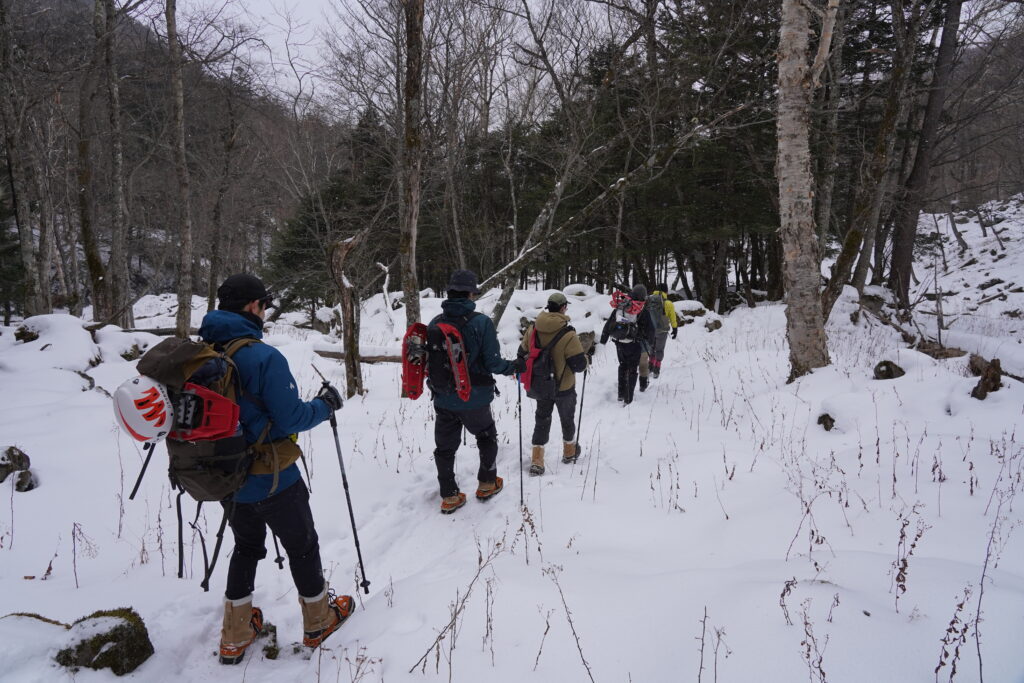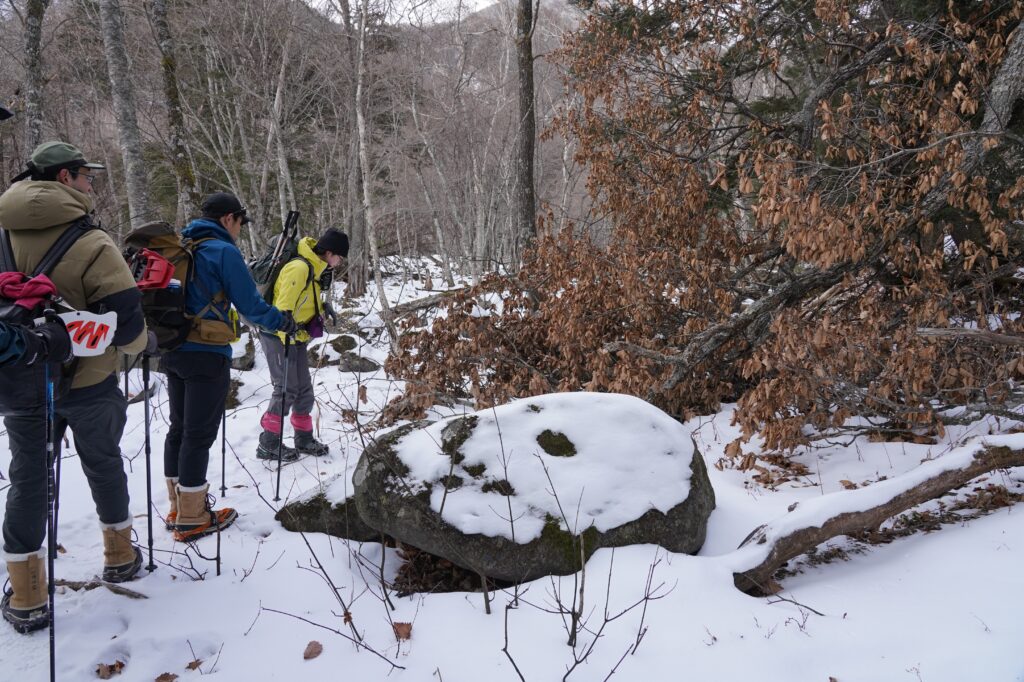 初めて行かれる方、ルートファインディングがご不安な方、ヘルメットやスノーシューをお持ちでない方等はぜひ、日光自然博物館のガイドツアーへのご参加を検討ください。