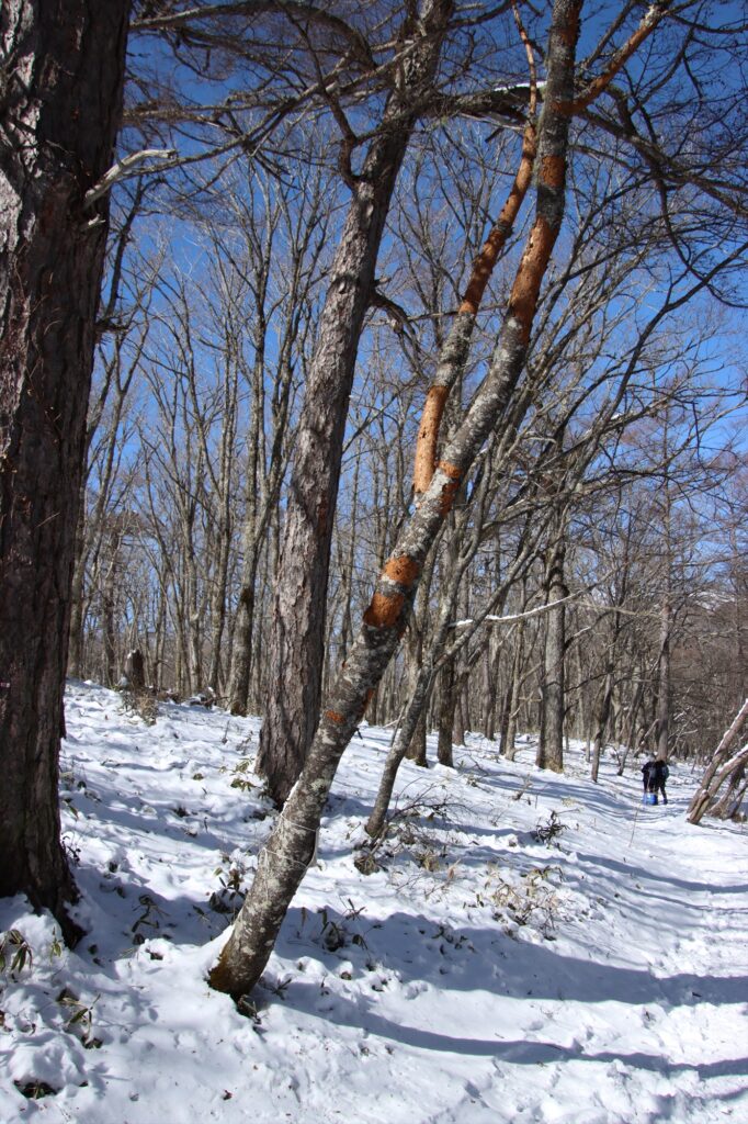 立ち枯れの樹皮がまるでピーラー剥かれたように綺麗に剥かれていました。