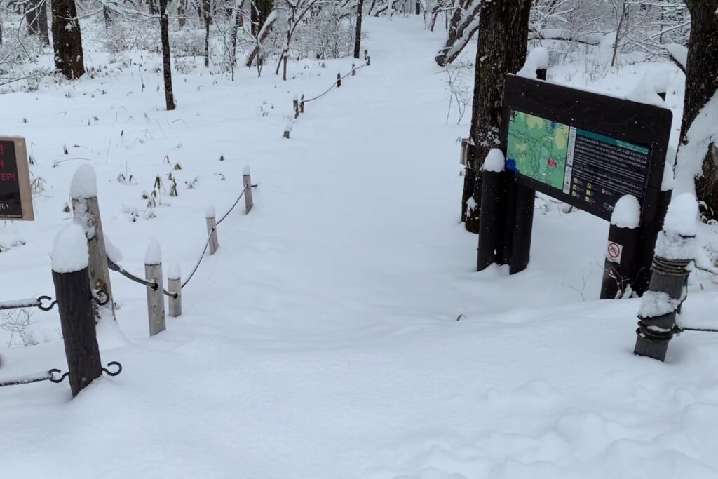 大変な思いはしつつも、素敵な出会いがあった今回ですが、誰一人歩いてない中訪れた私を、自然は歓迎してくれているような、そんな感覚をおぼえました。人があまり行きたがらない、そんなタイミングにこそ素敵な出会いは巡ってくるのかもしれません。この先もしばらくは雪のある期間が続くと思われますので、万全な対策をした上で奥日光の自然をお楽しみください。(鈴)