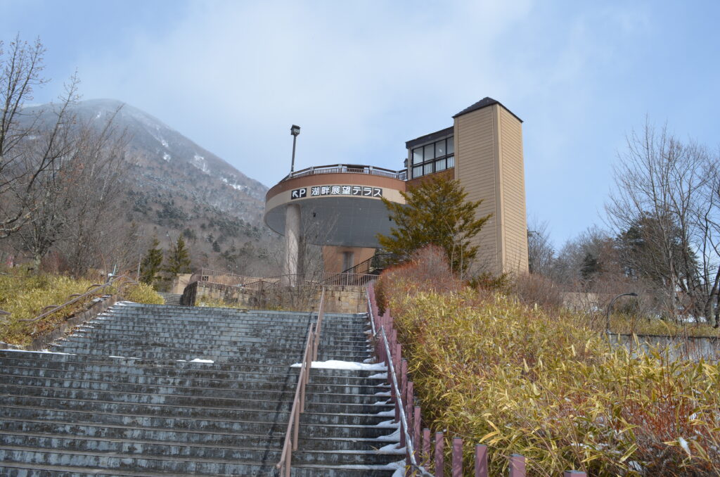 ずっと鳥たちを見ていたかったのですが、風が強くなってきたので西六番園地から折り返しました。それから再び町のほうへ戻り、裏通りにある湖畔展望テラスへ行ってきました。