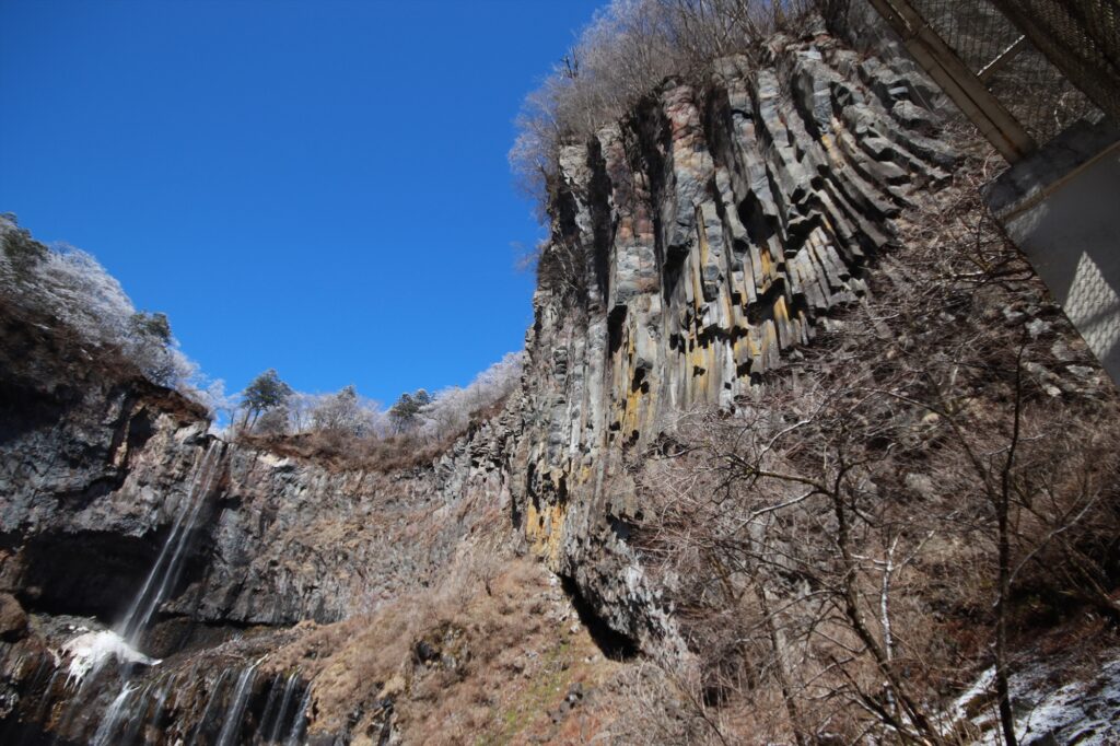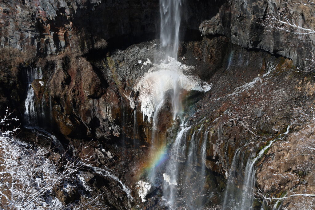 今回は華厳滝に行ってきました。取材日の前日に雪が降り、滝周辺の木々が雪に覆われ、まるで冬本番のような景色でした。