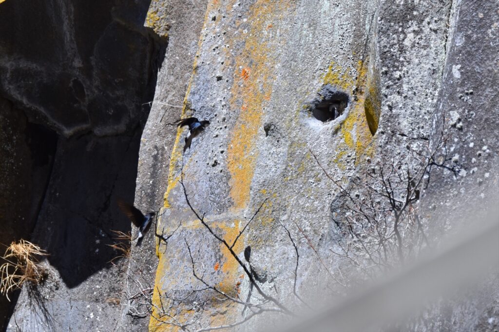 特に右側の崖にある「柱状節理」に巣をつくっていることが多いです。