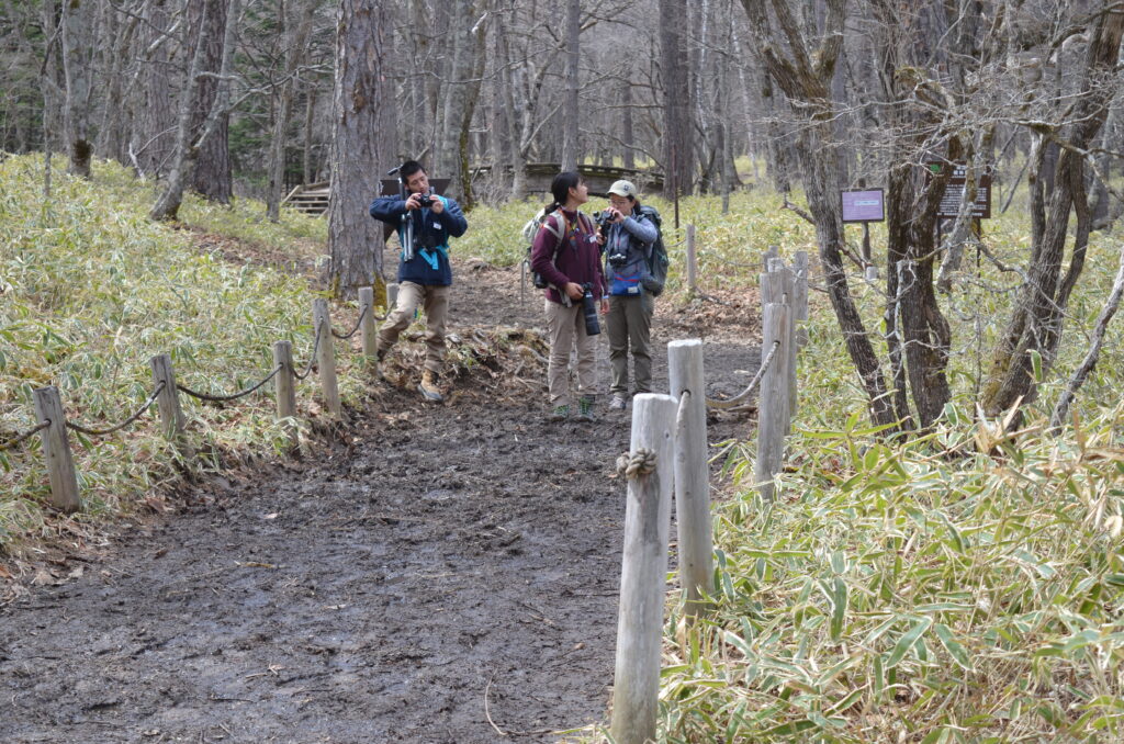 今の赤沼~湯滝間は木道以外の場所ではぬかるみが多く、通行の際は足元の装備をしっかりご用意していただけると安心といったところ。もう少しの間は同様の歩道状況が続く可能性がありますのでお越しになる際はお気を付けください。(福)