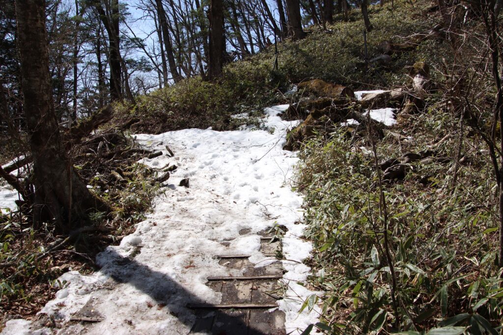 こちらも所々で残雪が見られました。