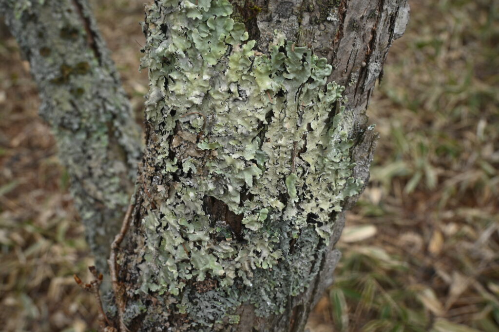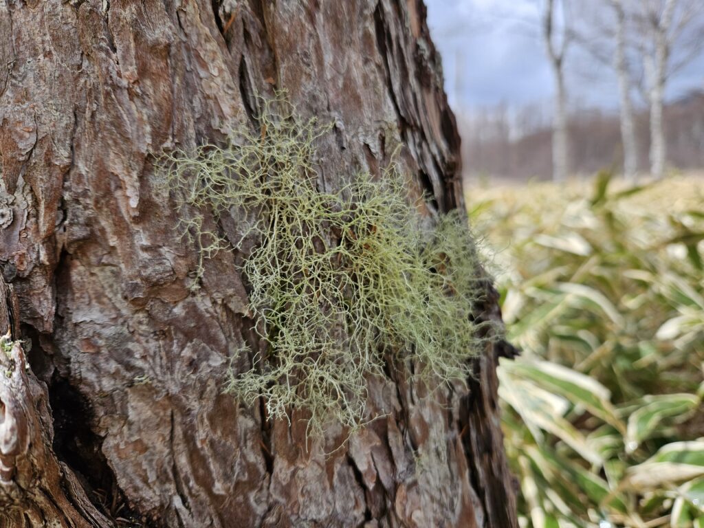 地衣類という木や柵にくっついている薄緑のコケのようなもので、菌類と藻類が共同生活をしている生き物です。