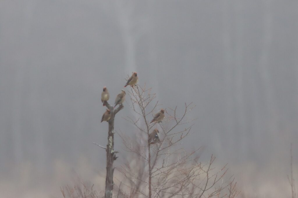 湿原部では『ノビタキ』・『ホオアカ』などに加え、20羽近いレンジャクの群れに遭遇!