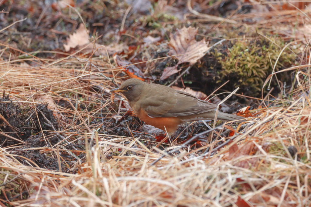 地上では落ち葉をガサガサどかして餌を探す『アカハラ』の姿もありました。