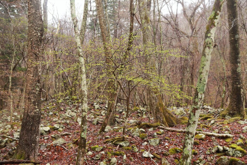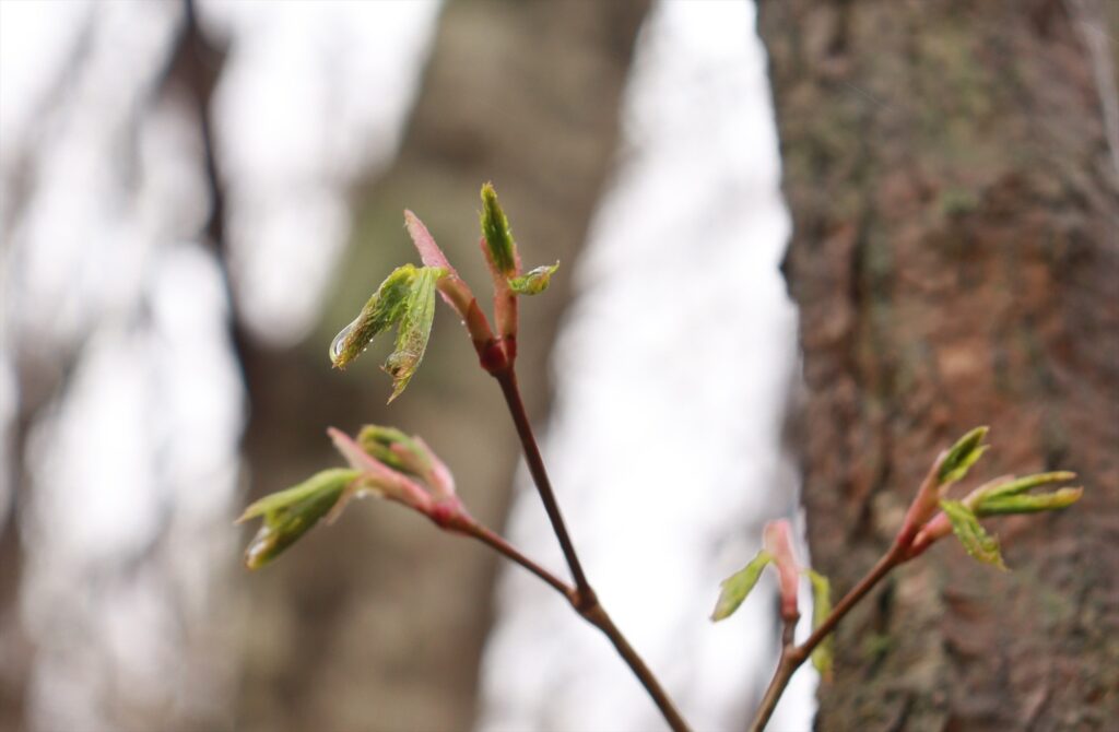 アカヤシオだけではなく、いろんな木々の冬芽がほころび始め、葉が芽生えてきています!南岸では他の木に比べカエデ類の葉の生長が早く、よく目立っていました。