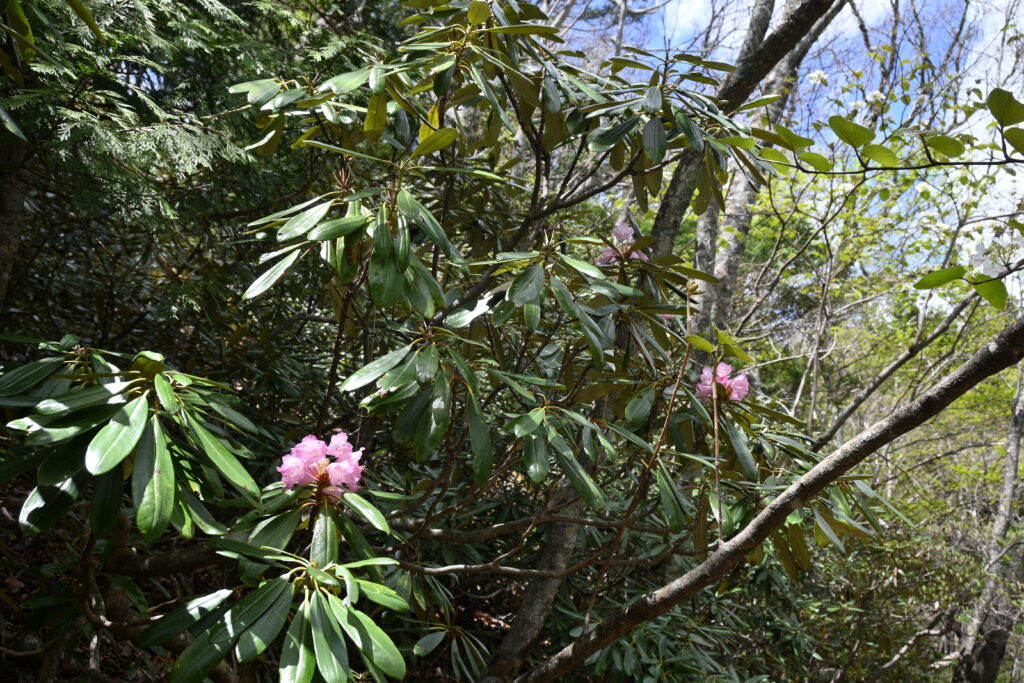 山側から三分の一進んだところで咲いているアズマシャクナゲを発見!