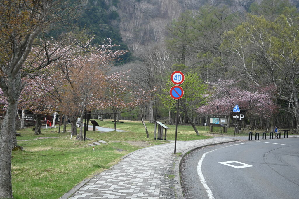 中禅寺湖畔より標高が高く涼しいため、湯ノ湖畔はまだオオヤマザクラが咲いています。