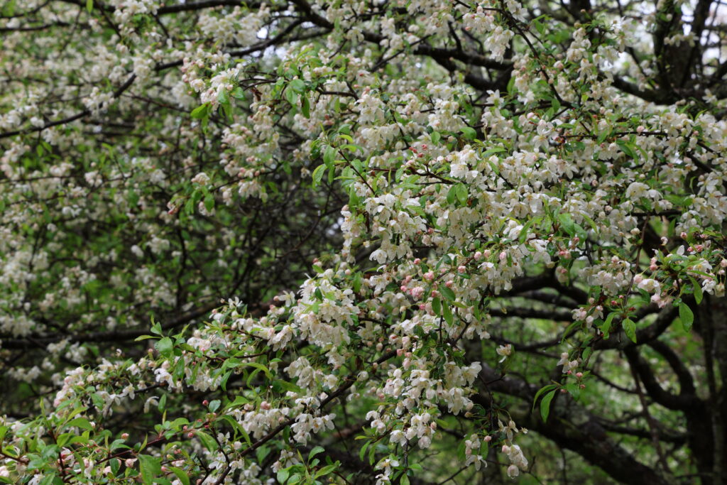 この辺りから戦場ヶ原中心部の展望台までの区間のズミは開花が進んでいる株が少なく、赤~ピンクのつぼみから、白い花まで見る事が出来ました。