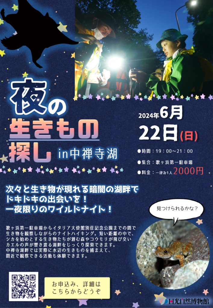 【 6/22(土)夜の世界を探検!】中禅寺湖で夜の生き物探し!