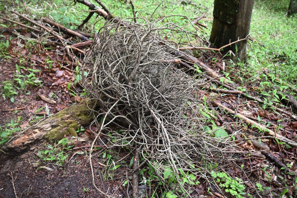 正体は枝の塊で、てんぐ巣病という菌による木の病気です。枝が重なっている様子が天狗の巣のようだということで