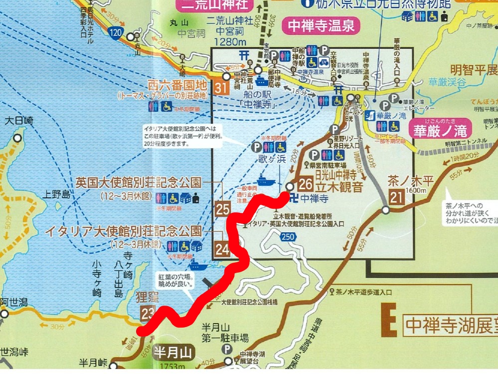 今回は歌ヶ浜駐車場から狸窪という浜辺までの中禅寺湖南岸を往復で歩いてきました。