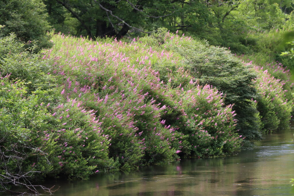 湯川沿いの木道では、見事に咲きそろたホザキシモツケを楽しむ事が出来ますよ♪