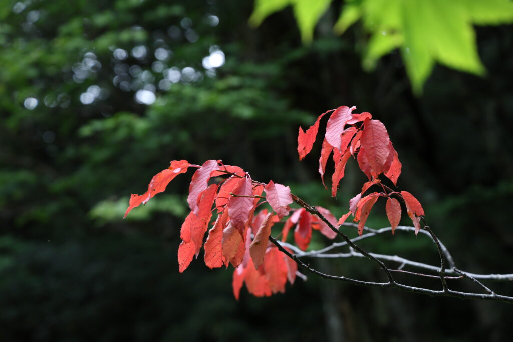 目的は達成できたので視野を広げて上の方も見てみると、木々の緑の中に、赤く染まっている箇所があることに気が付きました。