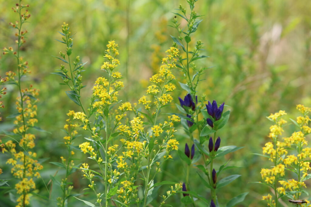 こちらは名前から秋らしい『アキノキリンソウ』と奥には『エゾリンドウ』