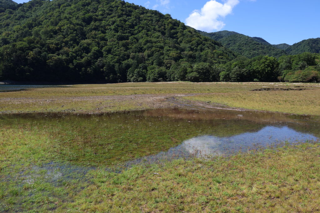 水辺には大きな水たまりが!!よく見るとポコポコ水が湧いているのも確認でき、小さな川も出来ていたので、これからじわじわと水量が増えていくことに期待!!