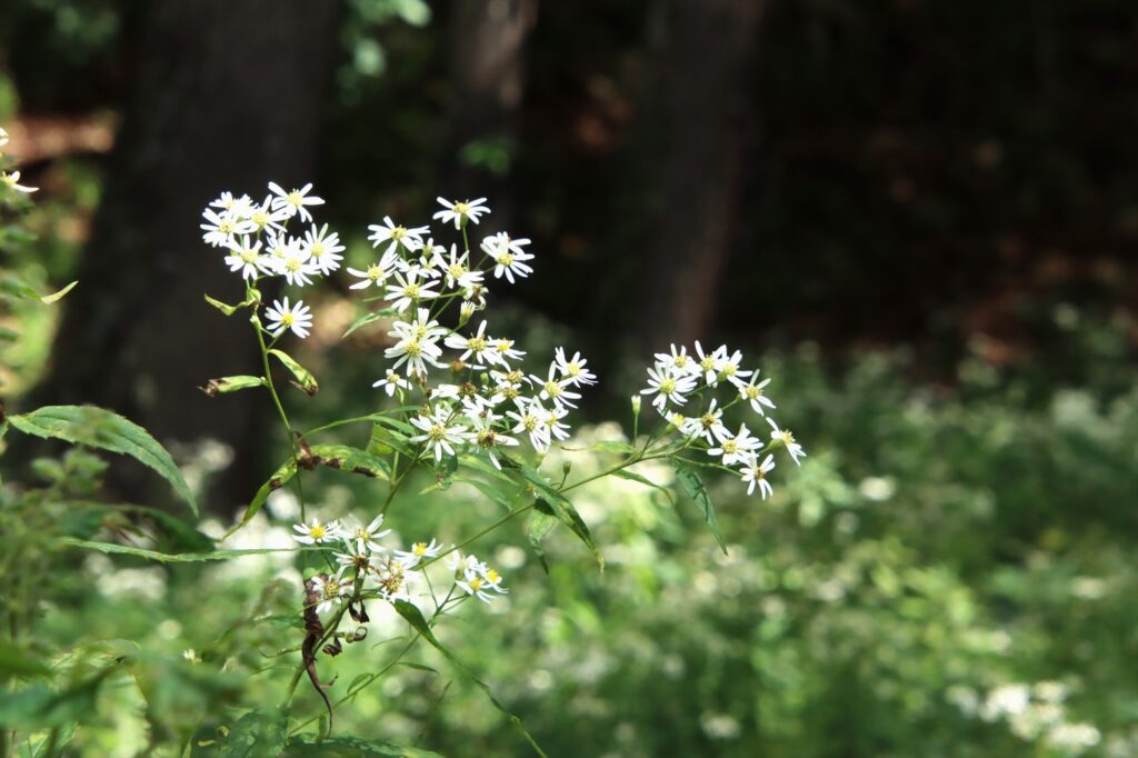 歩道周辺で大群落となっているシロヨメナ