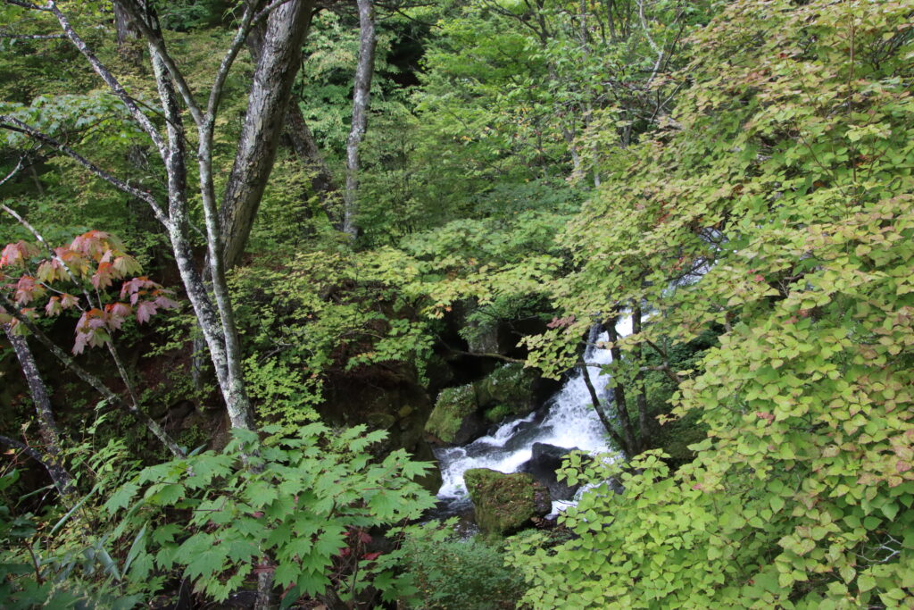 昨日(9月25日)に竜頭の滝の紅葉状況を見てきました。