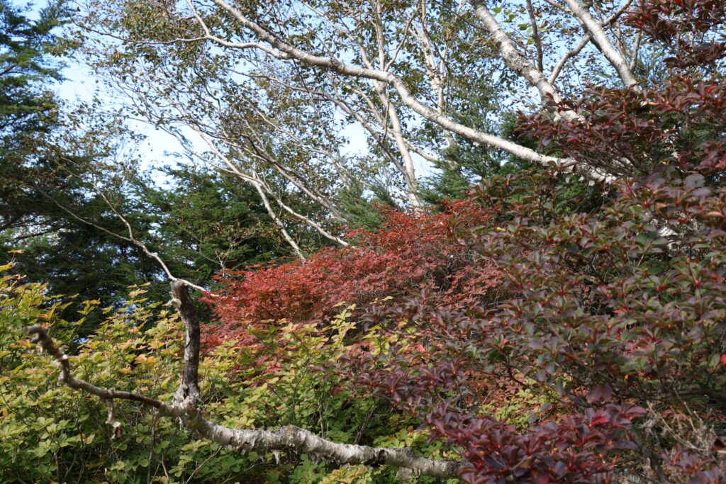 また、標高が高いということは早めに始まる紅葉も気になるところですが、ツツジ類は一部色付き始めている株がありました!ですが、全体的にはまだほとんど緑の葉ばかりで、週明け頃から徐々に色付き始めるかも?と言ったところでしょうか。