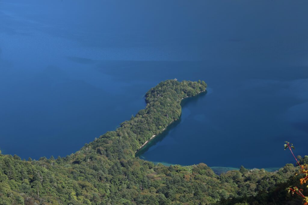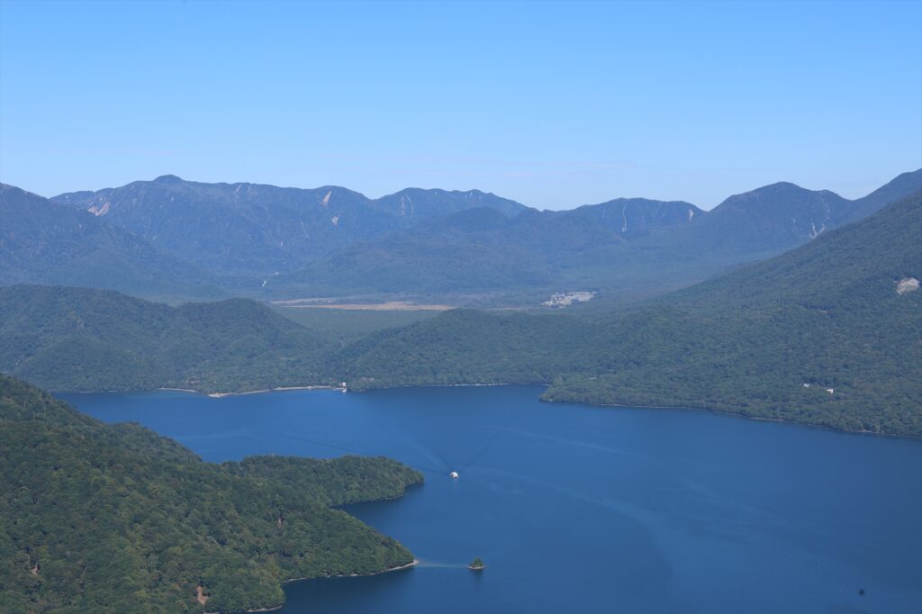 階段を上ると、、この上ない晴天に加え、視界いっぱいの中禅寺湖と大きな男体山の絶景が広がり、思わず息をのんでしまいました。