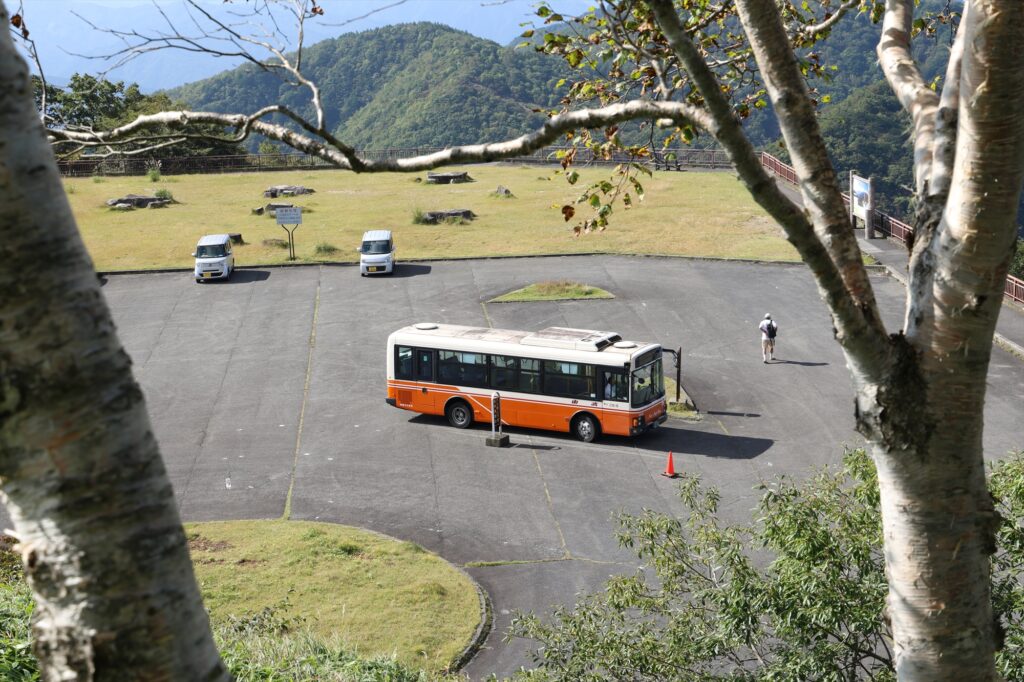 半月山停留所の周りは、駐車場と軽く休憩のできる広場になっており、ここからでも足尾の山々や天気がいい日には富士山を望むことができます。(写真は足尾方面の山々)