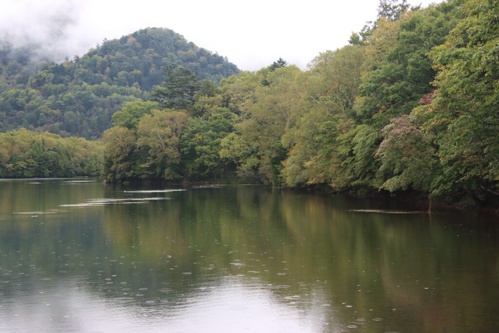 湯ノ湖の紅葉の進行具合としては色づきが始まったといったところでしょうか。