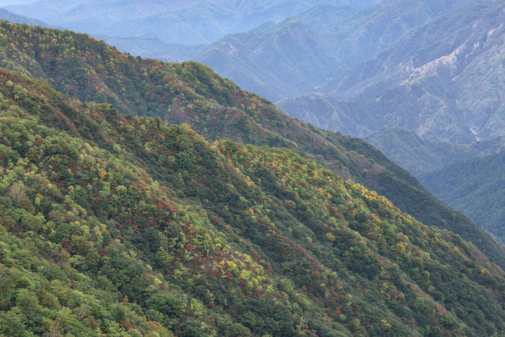 半月山駐車場から見た足尾の山々は色が色のコントラストが見え始めたので、数日以内に見頃入りになるでしょう。