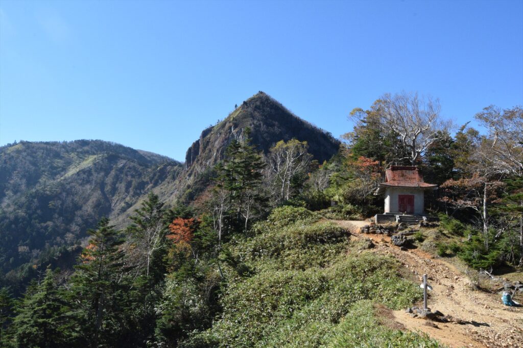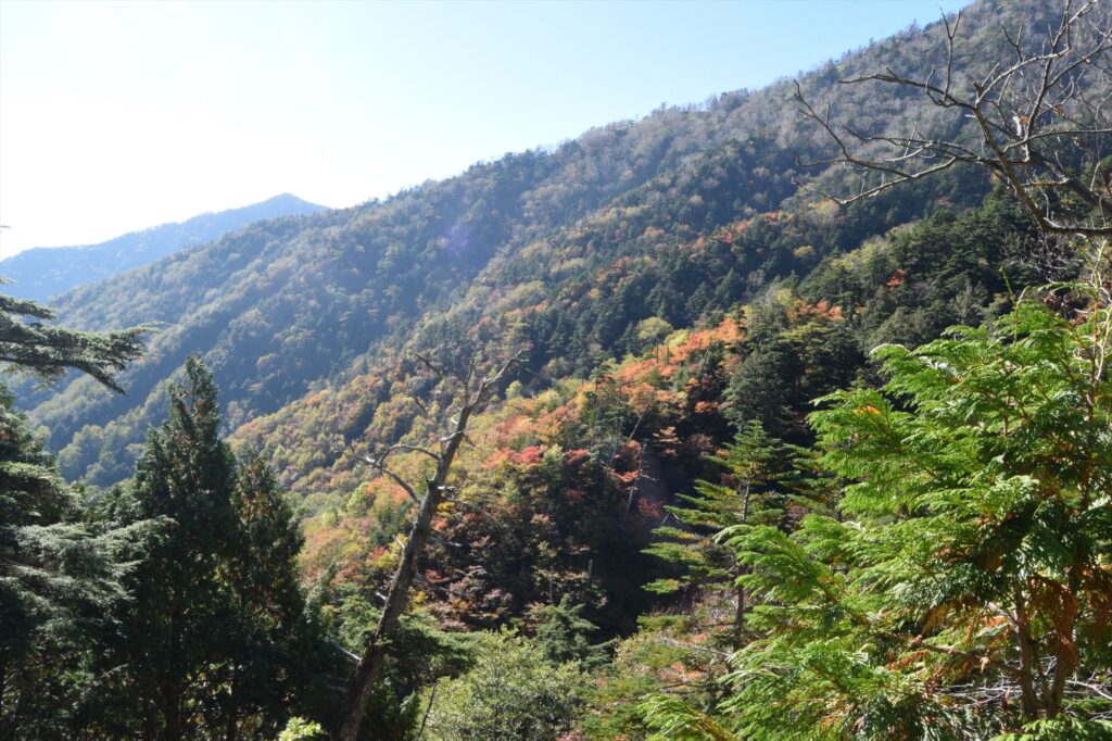 険しい道ではありますが、途中にある見晴らしの良い場所では、山肌の紅葉が見ることができ、景色に癒されながら登ることができます。