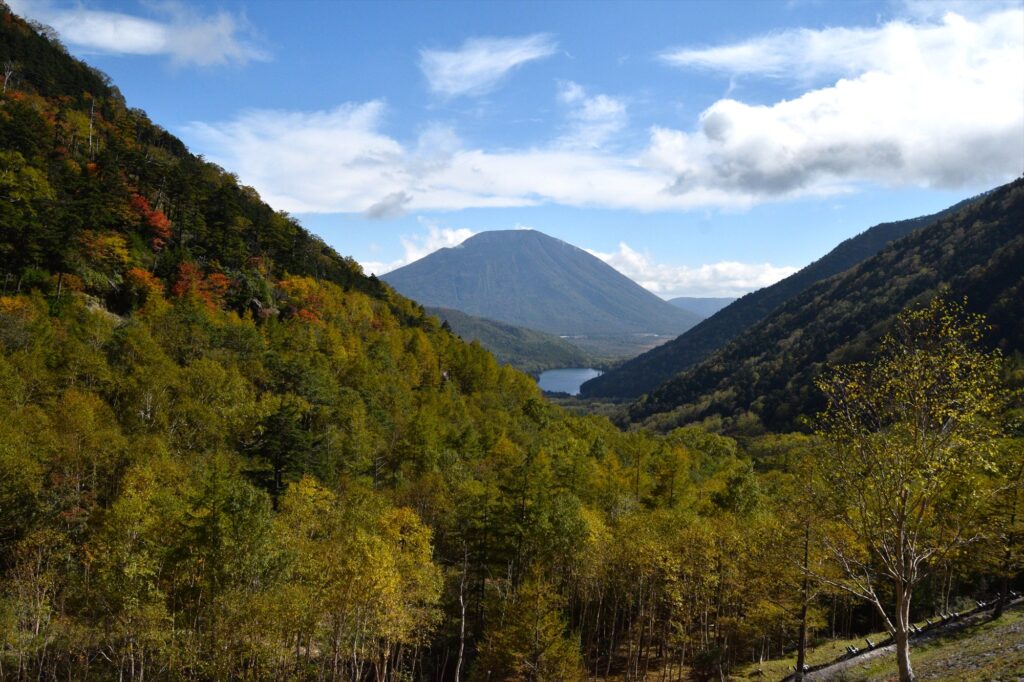 山頂からは、男体山や戦場ヶ原、湯ノ湖などが一望できます。さらにこの時期は周囲の山肌の紅葉が見頃になっているので、より綺麗な絶景が広がっていました。