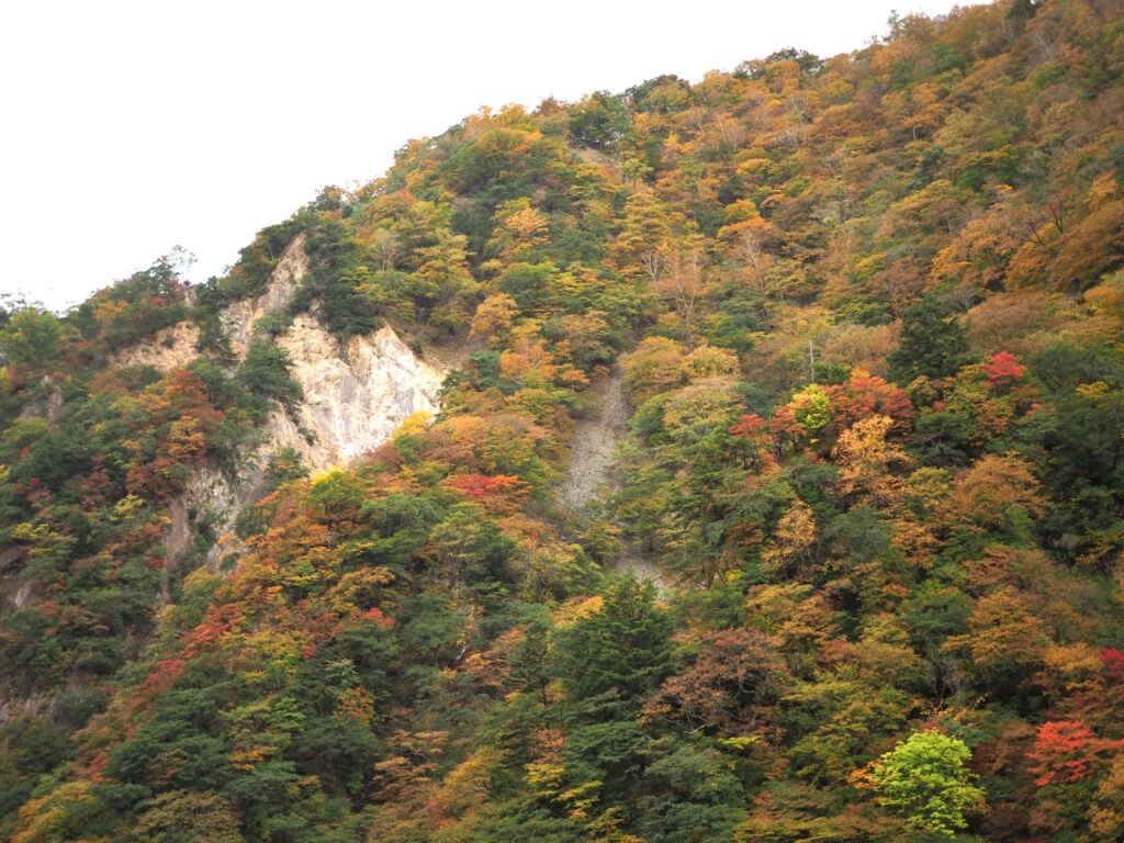渓谷の切り立った崖と美しい紅葉を一緒に見ることができますよ!