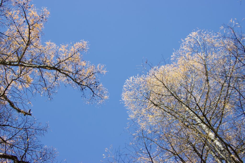 一方で、湿原内のカラマツや歩道付近のカラマツはボリュームダウンしてきた印象を受けます。