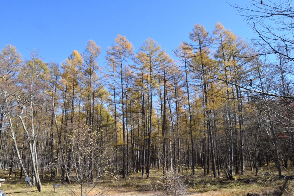 こちらは小田代原よりも葉が残っている木があり、カラマツの黄葉を見ることができました。