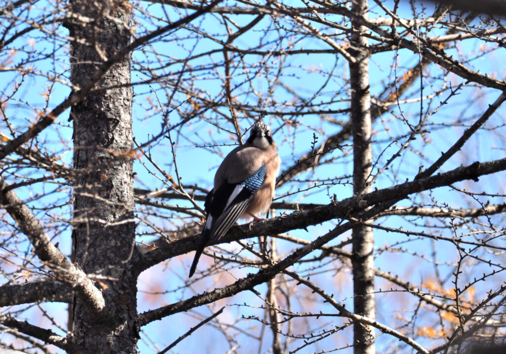 葉はなくなりましたが、枝が多い木に留まっていると探すのが一苦労ですね。