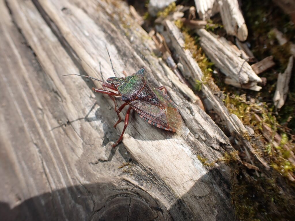 今回は落ち葉の中で冬眠するために樹上から降りてきたカメムシや冬に活動する蛾を観察することができました。