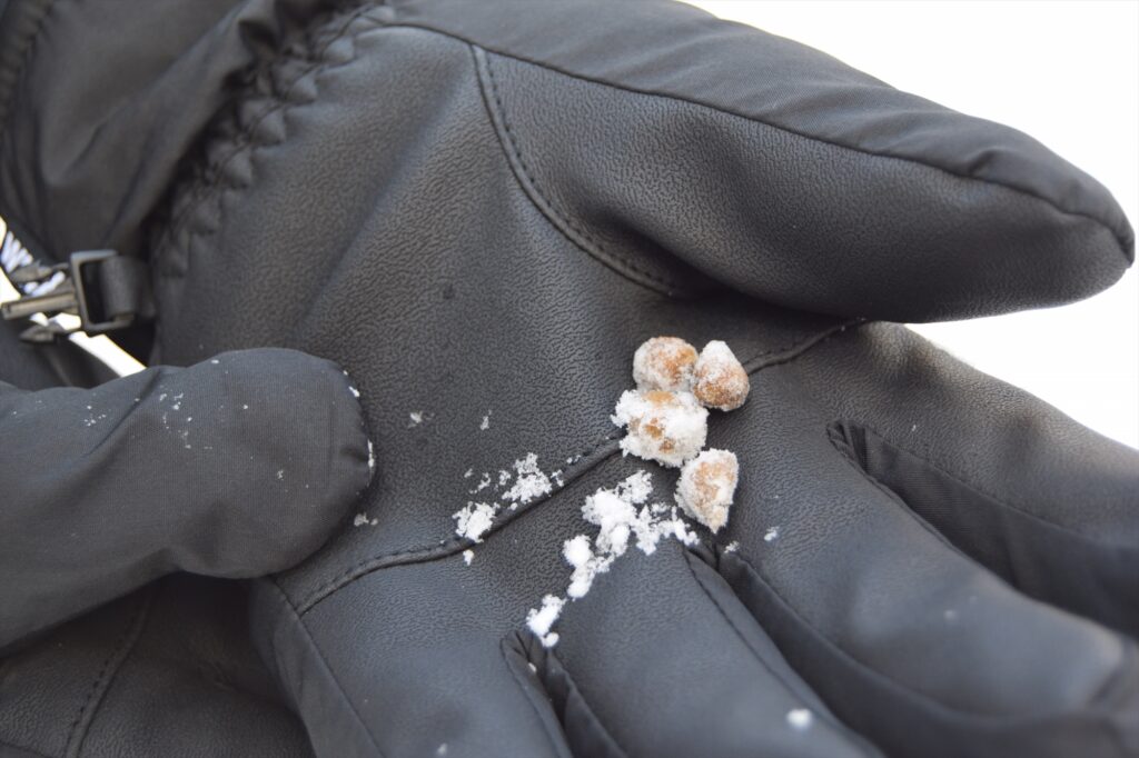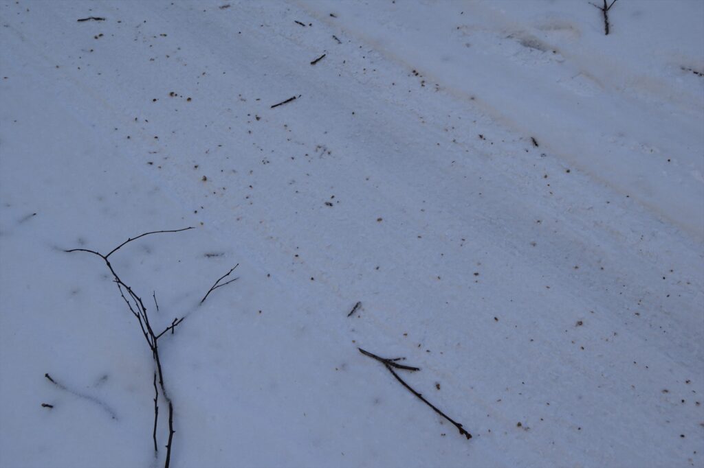 雪の上だとパラパラと落ちているのが、とてもわかりやすいです。